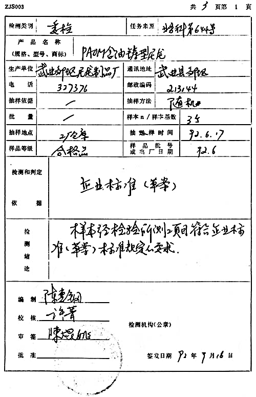 PAOM含油铸型尼龙检测报告